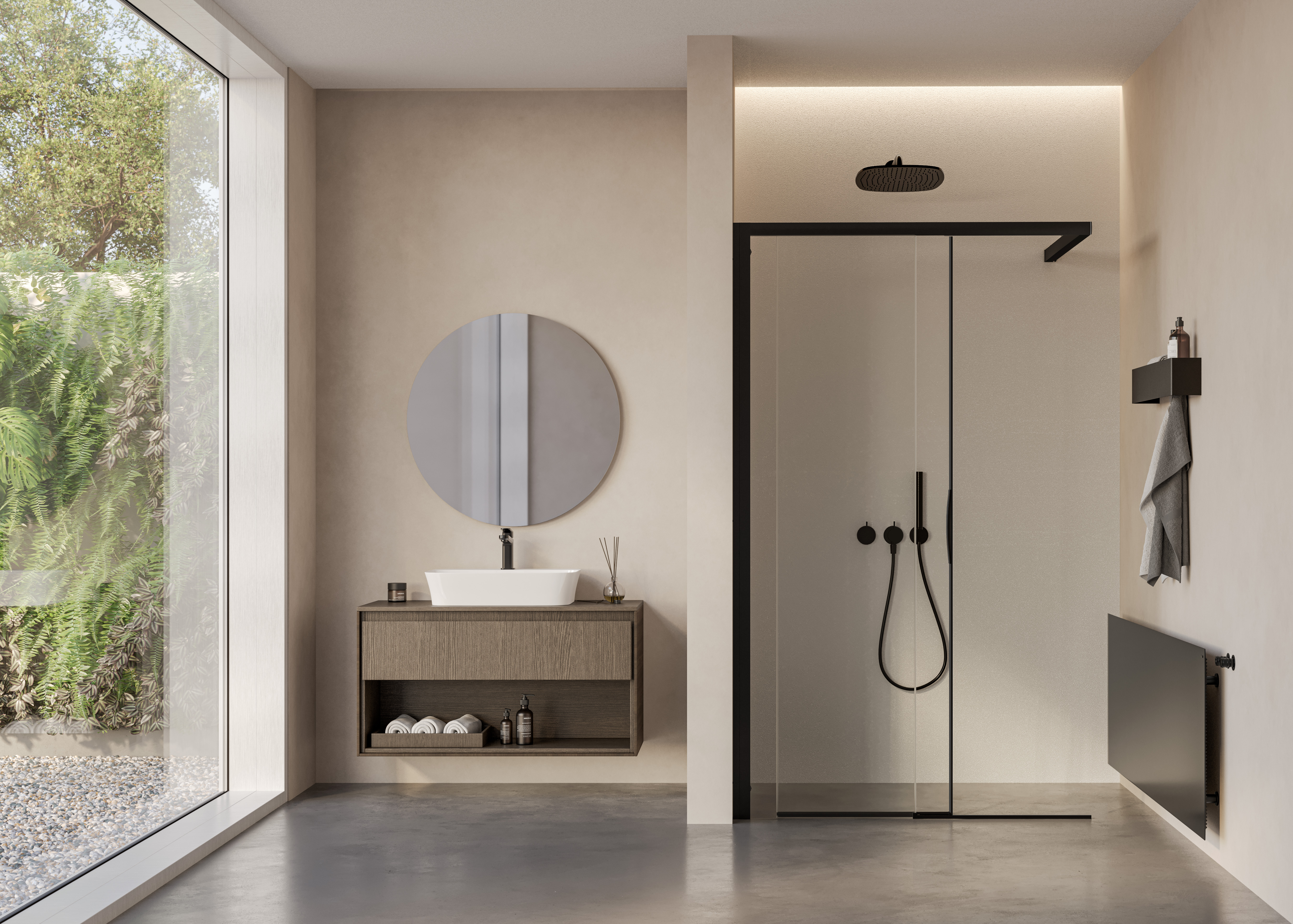 In particolare, la nuova proposta Walk In con porta scorrevole, novità assoluta nella gamma Duka, conferma l’evoluzione e la ver- satilità della serie libero 4000, capace di integrarsi con eleganza e naturalezza in qualsiasi ambiente bagno, rispondendo con stile alle differenti esigenze di spazio e funzionalità.