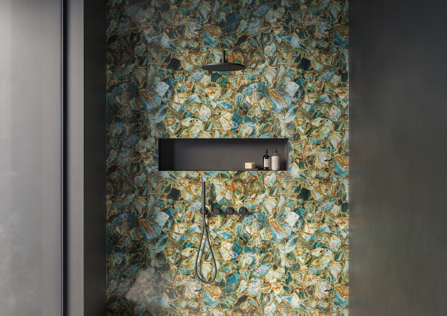 L’azienda guidata da Silvia Giannetti ha sede nel distretto lapideo di Verona, ma la storia di ogni progetto inizia molto più lontano: nelle miniere dell’India dove Nemesi seleziona agata, quarzo, ametista e altre varietà di semipreziosi con un approccio responsabile. La sostenibilità è insita nella cultura d’impresa del brand e si traduce nell’acquisto mirato sulle reali necessità per evitare sprechi e ridurre l’impatto ambientale. Inoltre, in un’ottica di circolarità gli scarti vengono riutilizzati per creare nuove lastre o trasformati in graniglia per realizzare pannelli compositi.