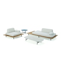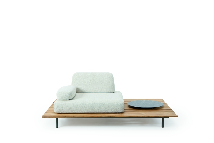 Comfort, estetica, personalizzazione e libertà di configurazione, Calipso è proposta in tre differenti moduli, ciascuno dei quali composto da una base realizzata con doghe in teak naturale, di diverse dimensioni. La struttura, in alluminio, è particolarmente discreta, tanto da suggerire la sensazione che le sedute lounge siano ‘sospese’. Anche i cuscini sono disponibili in tre dimensioni e sono ‘liberi’ rispetto alla base che li accoglie, più ampia dei volumi dei cuscini stessi per consentire la massima libertà di posizionamento di ciascun elemento, a seconda delle esigenze. I cuscini schienale, anch'essi liberi, per consentire un corretto sostegno del corpo utilizzano un particolare sistema d’appoggio, grazie all’imbottitura interna che combina diversi tipi di densità di gomma. A completare la collezione lounge, ci sono i coffee table con frame in alluminio e piano ovale o rotondo in pietra ceramica e pietra lavica smaltata (solo per la versione tonda). Calipso è una collezione che asseconda con disinvoltura le esigenze degli spazi residenziali e quelle più sofisticate degli ambienti contract e dell’hotellerie.