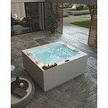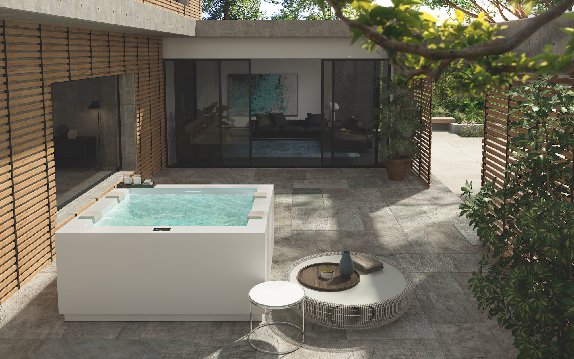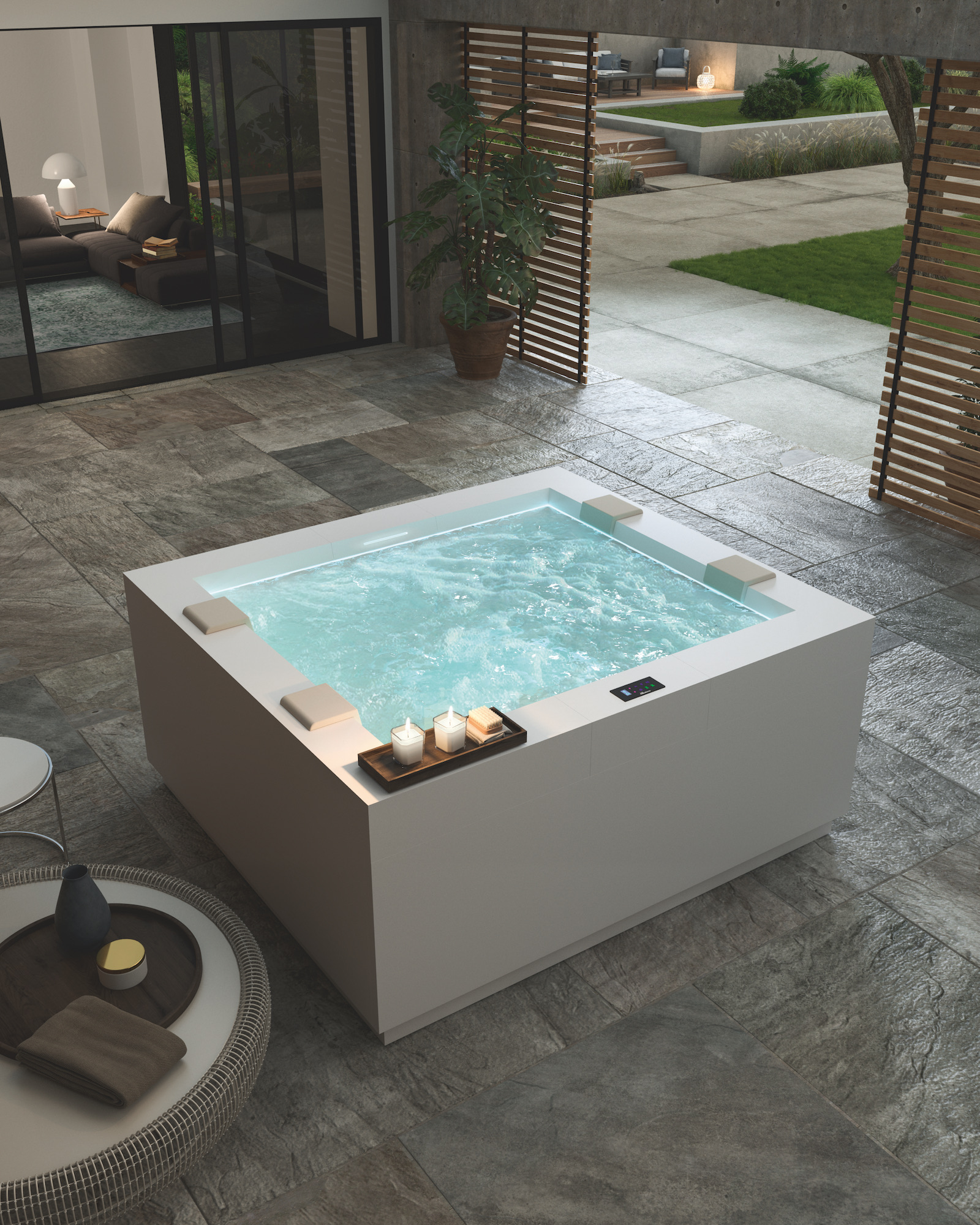 Modula Pool è la nuova mini piscina di Albatros realizzata in Solid Surface in presso colaggio (ad iniezione) con stampo modulare. Caratterizzata da un taglio perimetrale, lungo il bordo interno della vasca, Modula pool, propone un design leggero dalle generose geometrie ergonomiche, pensate per una corretta e confortevole immersione. Modula Pool propone inoltre, un massaggio Whirlpool con bocchette invisibili grazie al Secret System ed integra l’illuminazione (cromoterapia) all’interno del materiale della vasca. Infine, un innovativo sistema di ricircolo dell’acqua, integra la funzione del troppo pieno all’effetto bordo a sfioro Syraka dal design di Claudio Papa.