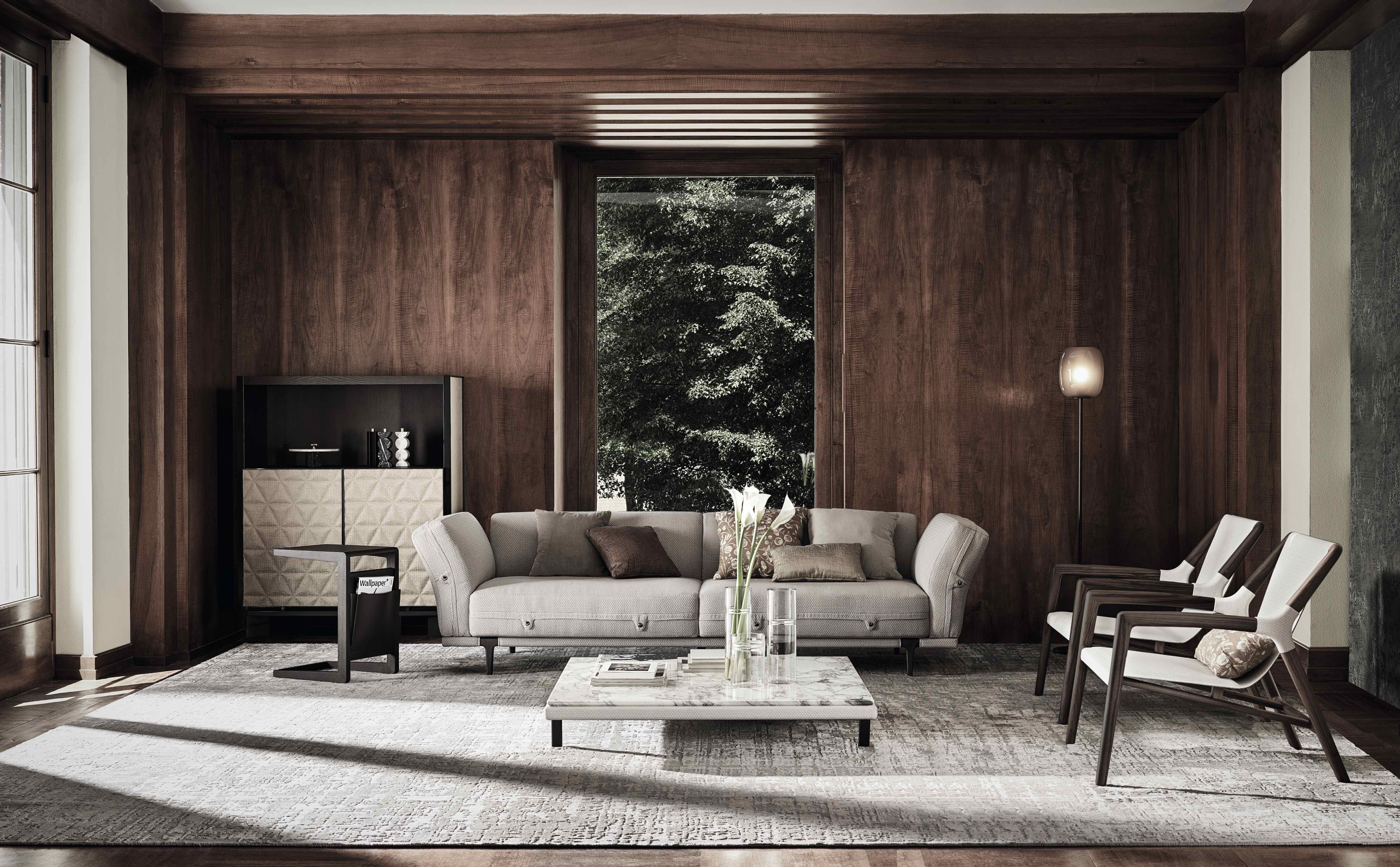 L’architetto ha firmato una serie di arredi che dialogano tra loro, caratterizzati dall’uso sapiente di materiali pregiati (dal noce al marmo, dal tessuto al cuoio)e dove l’attenzione al dettaglio è quasi maniacale: due linee di imbottiti complete di divani e poltrone (Velour e Asola), una poltroncina con una soluzione inedita nell’utilizzo di materiali (Tela) una serie di coffee e side-table (Ago e Twill), una libreria (Frame), una linea di madie). Come per le precedenti collezioni, il primo obiettivo è il mercato residenziale, ma tutti i prodotti possono essere adattati facilmente al mondo del contract.