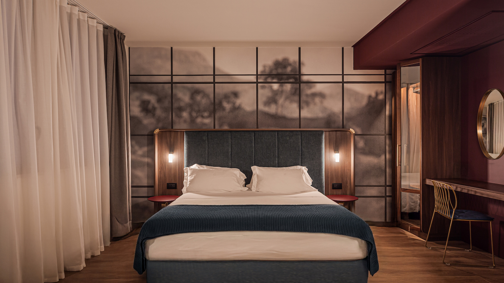 Le camere e le suite interpretano due diverse dimensioni dell’abitare. Le prime, pensate per brevi soggiorni, coniugano comfort e raffinatezza, con finiture di alto livello e un senso di intimità che richiama l’eleganza delle case storiche.