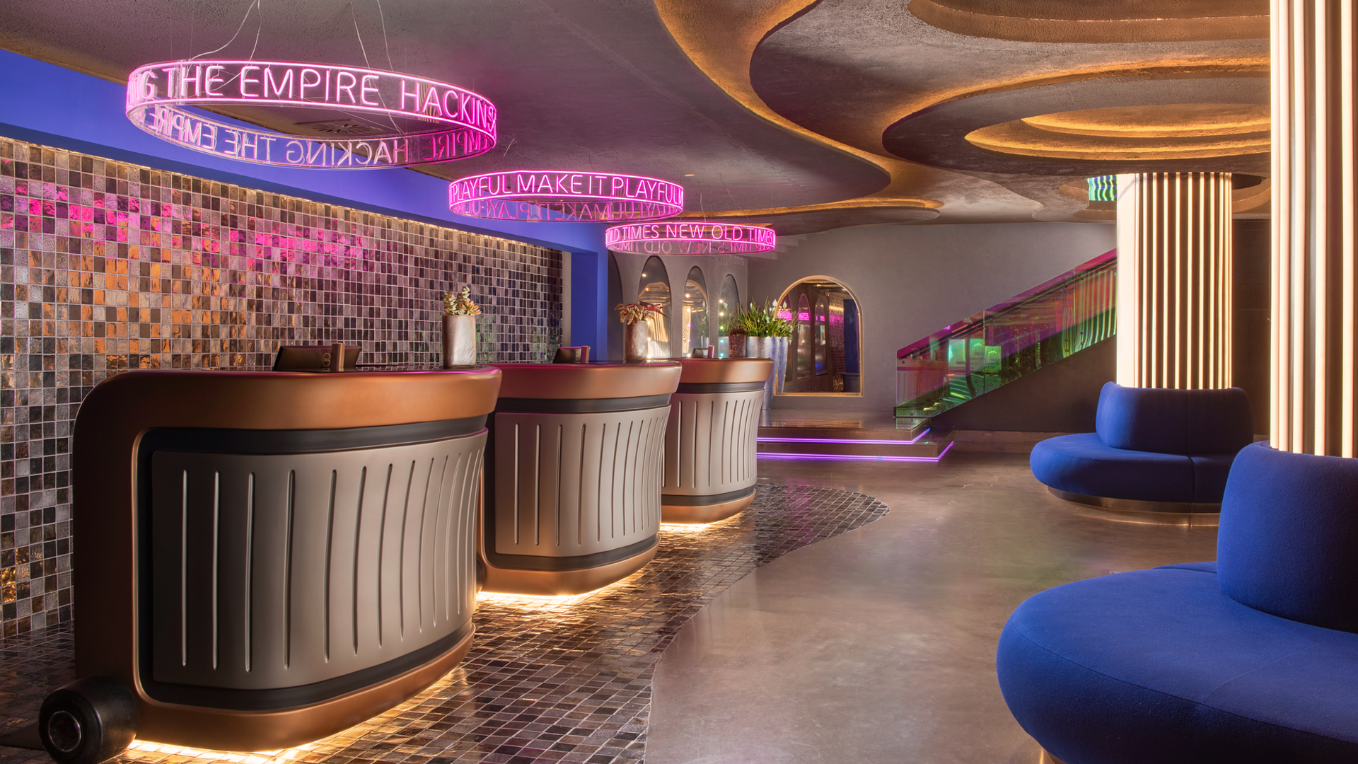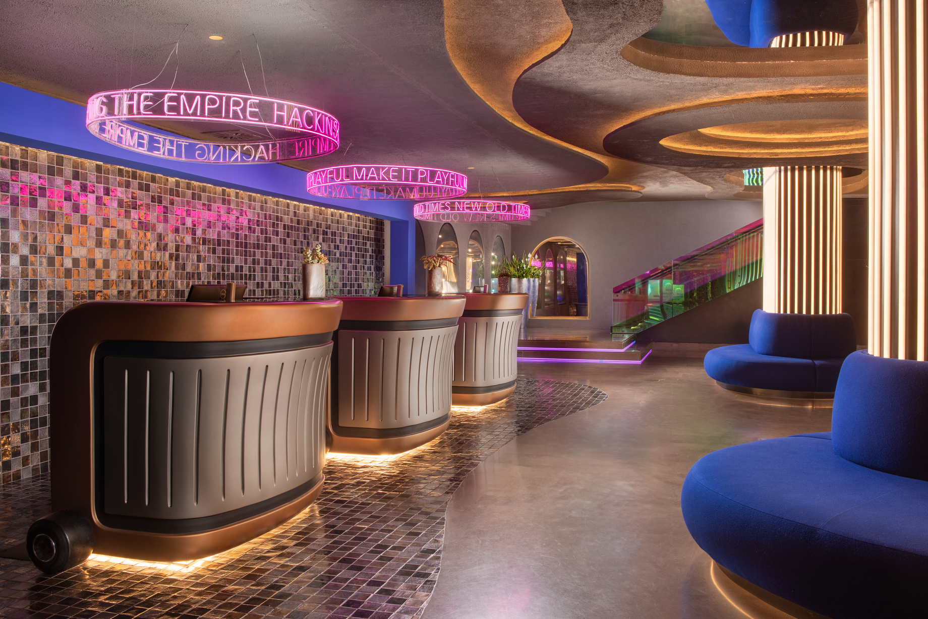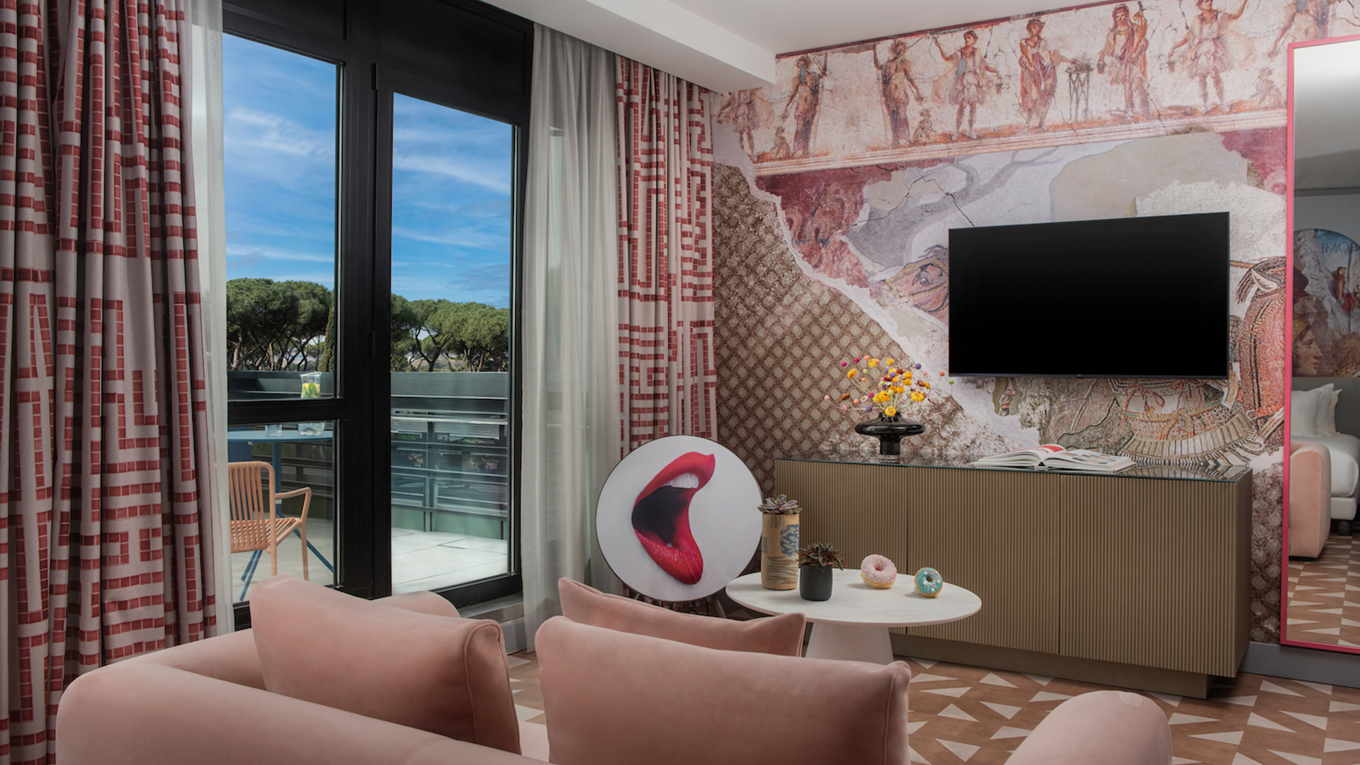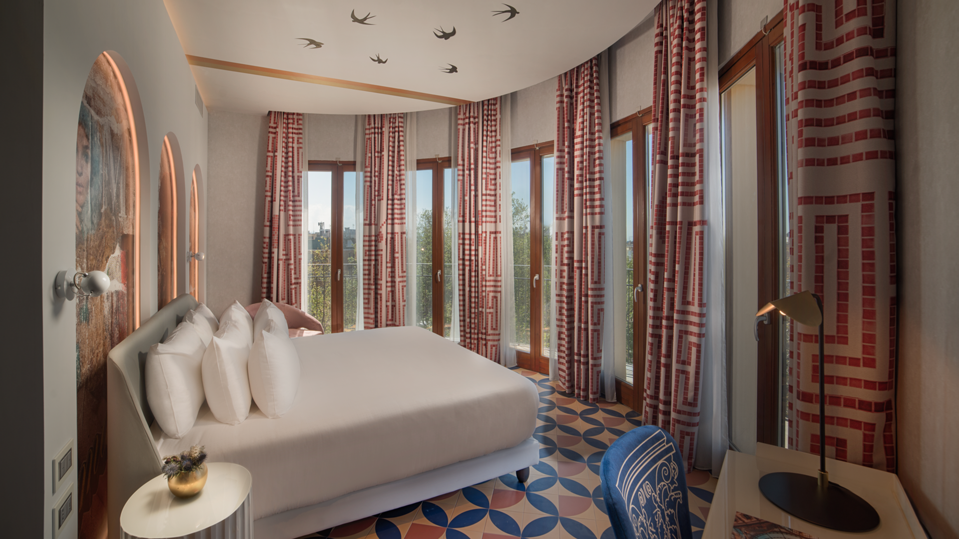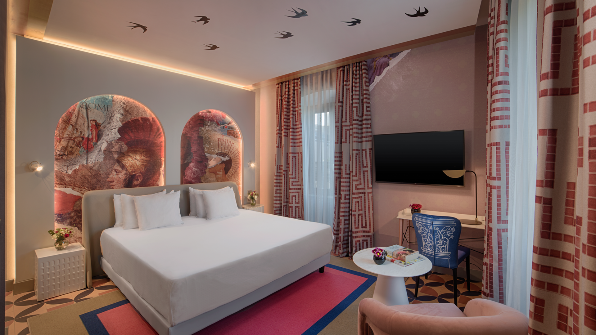 L’hotel prende forma come un hub creativo che dà vita a un dialogo tra antico e moderno, sacro e profano, passato e futuro, maestosità e irriverenza, in un gioco di contrasti che offre agli ospiti un'esperienza sensoriale unica. Attraverso la tecnica del decollage, il design, rivela la stratificazione stessa di Roma, costruita su secoli di storia, arte e cultura, ispirandosi al concept "New Old Times”: un viaggio tra i secoli che reinterpreta in chiave contemporanea l’antico splendore dei fasti romani, del Rinascimento e dell’Impero Romano attraverso un mix giocoso, ironico e sorprendente.