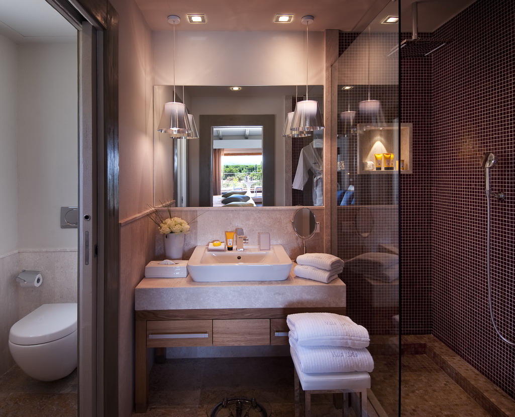 Il Forte Village è un resort sul mare in Sardegna dove la natura, l'alta cucina, lo sport ed il benessere si fondono in un’unica destinazione. Il Forte Village si estende su 47 ettari di giardini lussureggianti, lungo una spiaggia di sabbia bianca e si compone di 8 raffinati hotel, 21 ristoranti, 11 bar, campi per praticare qualsiasi tipo di sport e numerosi negozi di lusso. Gli Hotel del Forte Village offrono un’ampia varietà di soluzioni esclusive e di grandissimo comfort. È in questo contesto che trovano posto i prodotti della collezione Libera e D-sign di Newform. La nuova collezione di rubinetteria LIBERA firmata Newform si distingue per i tratti netti e decisi, per la simmetria dei volumi che rispecchia una chiara espressione di equilibrio conferendo all’ambiente bagno uno stile che si fa essenzialmente ordinato. La collezione D-SIGN creata dall’ufficio stile Newform viene riproposta nelle diverse soluzioni per lavabo e vasca tradizionale, da appoggio, a muro e a incasso. Una soluzione estremamente moderna, adatta a contesti d’arredo essenziali e rigorosi.