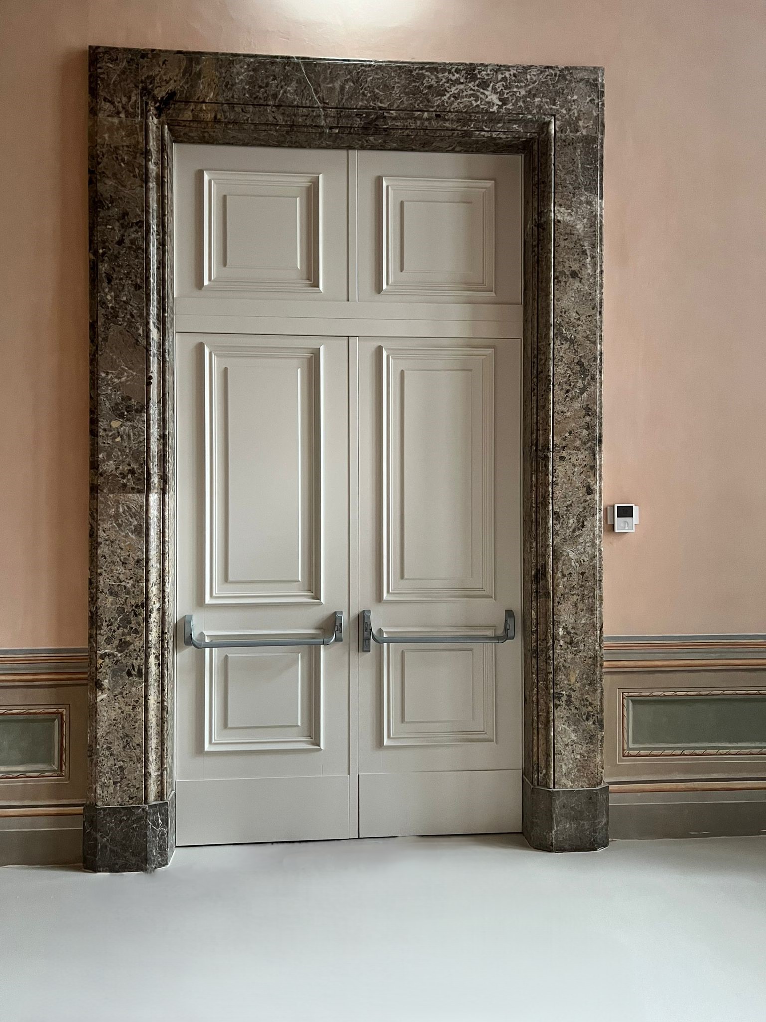 Sebino Chiusure ha fornito per la Reggia di Caserta porte REI 120 a due battenti lavorate con cornici a formare il bassorilievo.