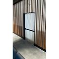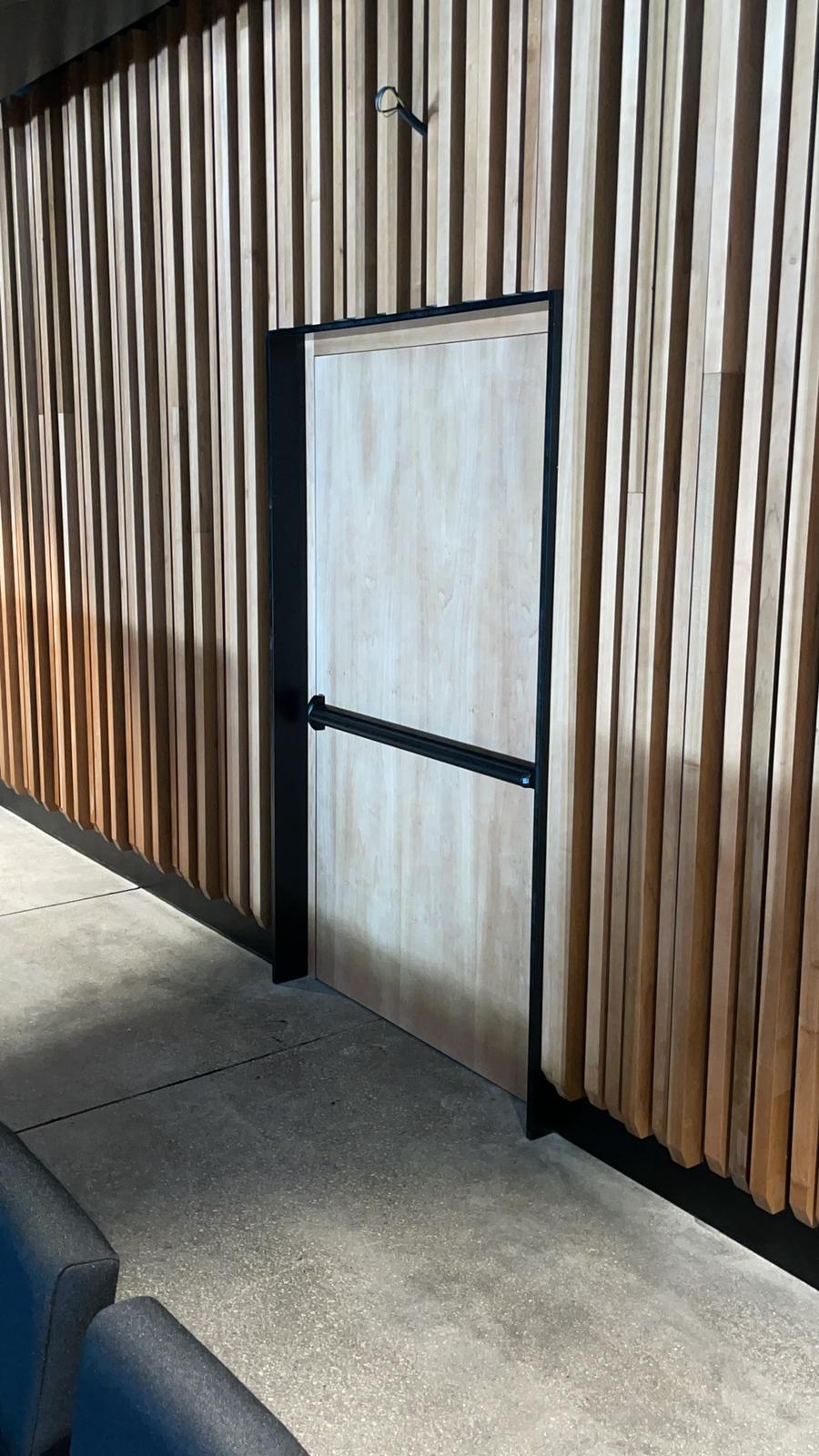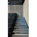 Completano l’intervento porte normali complanari, sia in nero profondo RAL 9005 che nella calda texture del Toulipier, e porte tagliafuoco EI 60 GD complanari, caratterizzate da finitura bilaterale con Toulipier su un lato e laccatura poliuretanica opaca nero profondo RAL 9005 sull’altro.